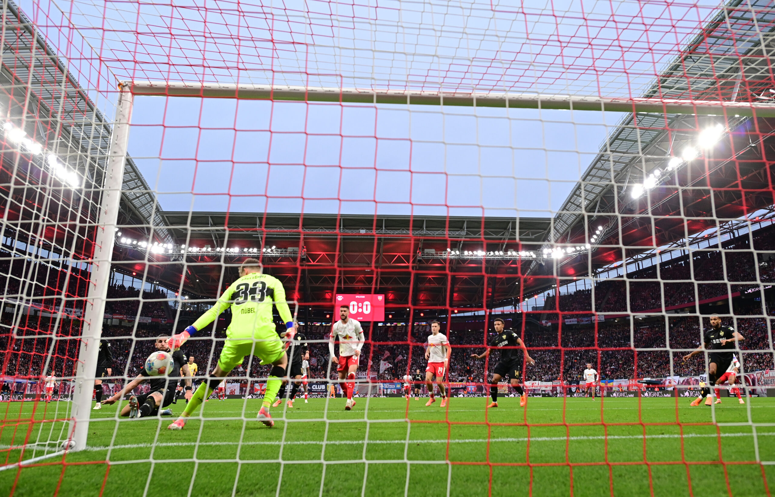 Leipzig hatte Diomande, der VfB hatte Pech: Die erste der beiden unglücklichen Aktionen, die zu einem Gegentor führte.