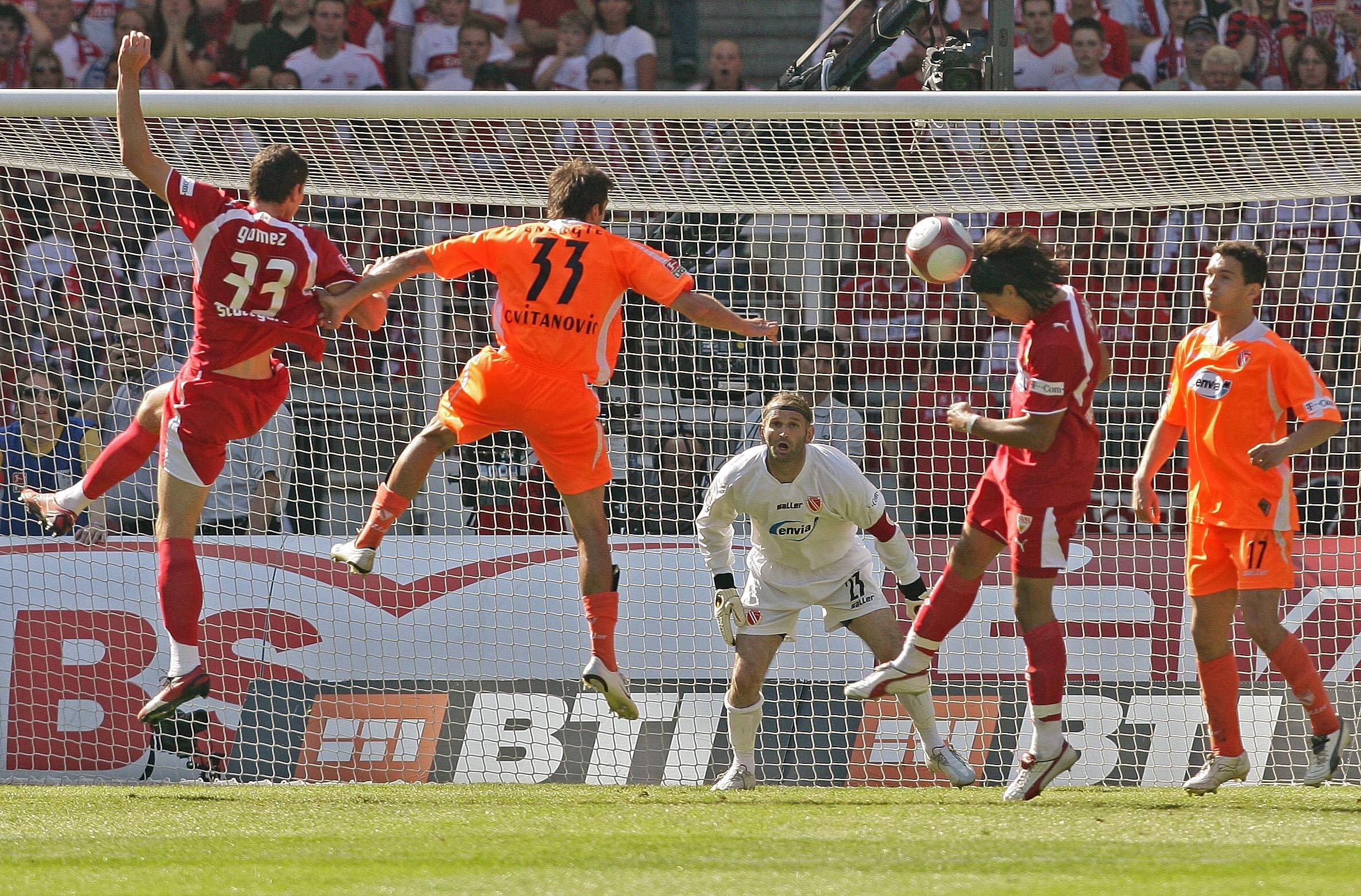 - Der späte 2:2-Ausgleich gegen Bayern, im Hintergrund Kapitän Hitz