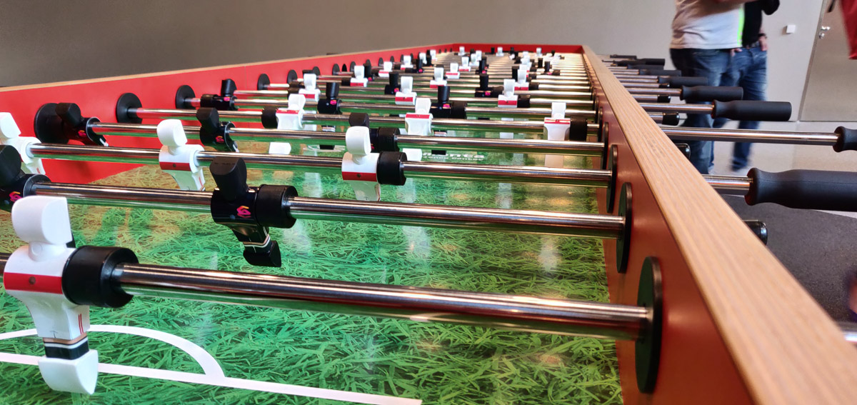 Über das ganze Museum hinweg gibt es immer wieder Bereiche, die auf die Sonderausstellung hinweisen, ein überlanger Tischkicker für bis zu zwölf Spieler – natürlich eine Mannschaft davon stilecht im Brustring – wartet auf ein Spielchen zwischen den ganzen Autos mit dem Stern.
