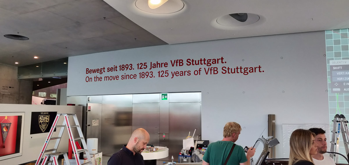 Schon vor der offiziellen Eröffnung am 9. September konnten wir einen Blick auf die Ausstellung werfen. Es gibt noch einiges für die Museumkuratoren Dr. Florian Gauß (Archivar beim VfB Stuttgart) und Thomas Schwarz (Mercedes-Benz Museum) zu tun – aber wir können euch versprechen, dass es ein schönes rundes Ding wird und für alle die den Brustring im Herzen haben auch sehr emotional.
